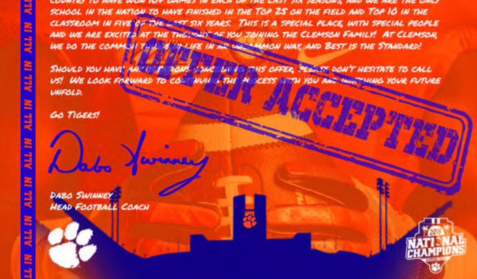 Official offer from Clemson . 🐅 pic.twitter.com/CbjkJT4vch