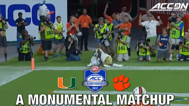 Top-ranked Clemson and No. 7 Miami will square off in the 2017 ACC Football Championship Game in a matchup that will help shape the College Football Playoff picture.