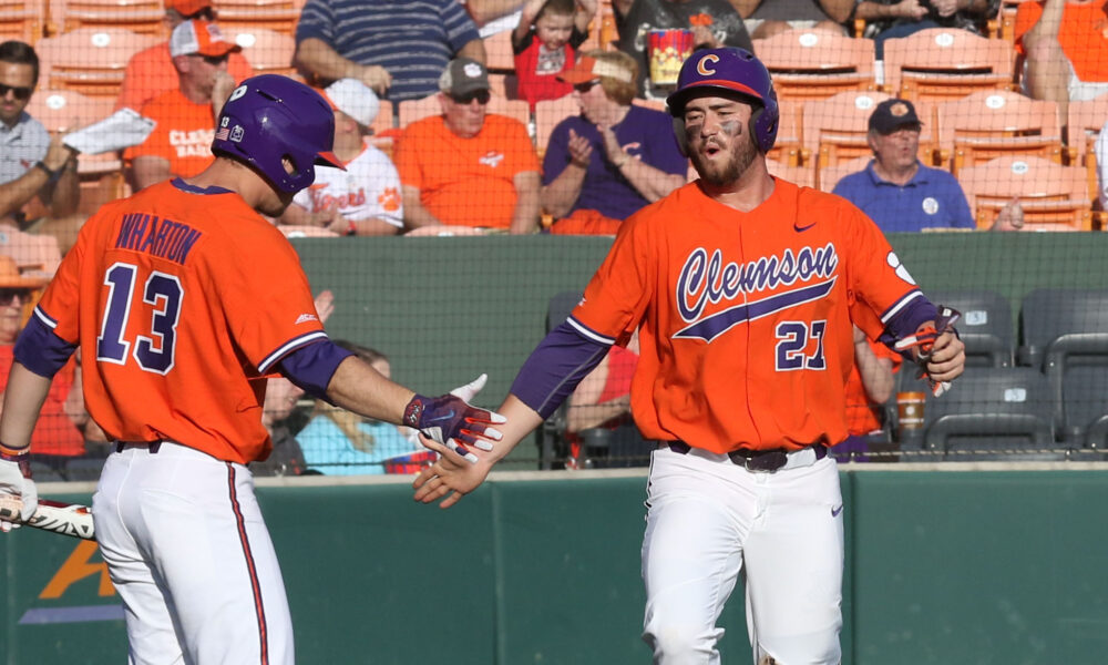 In the second the Tigers added to their lead. Drew Wharton hit his first career home run, a solo shot to make it 3-0 Clemson.