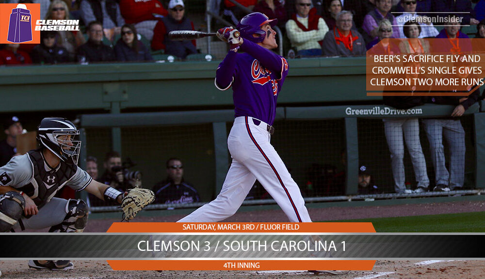 Clemson took a 3-1 lead on another sacrifice fly, with a pair of runs in the bottom of the fourth.