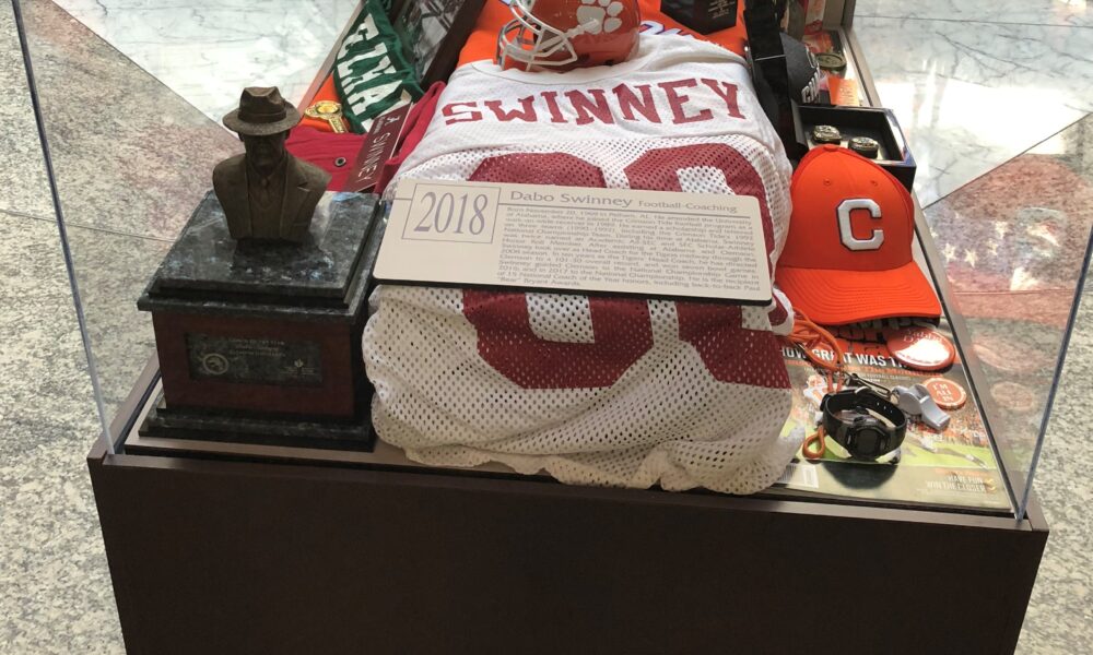 BIRMINGHAM, Ala., — Clemson head coach Dabo Swinney will be enshrined in the Alabama Sports Hall of Fame on Saturday in Birmingham Ala.