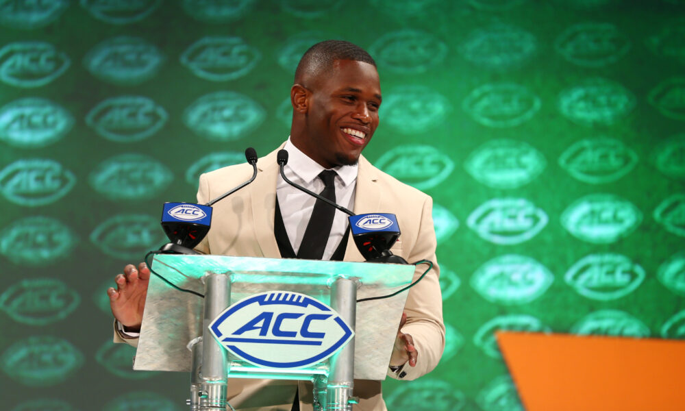 CHARLOTTE, N.C. – Miami players Ahmmon Richards and Jaquan Johnson spoke to the media at the ACC Football Kickoff at the Westin Charlotte Wednesday in Charlotte, N.C.