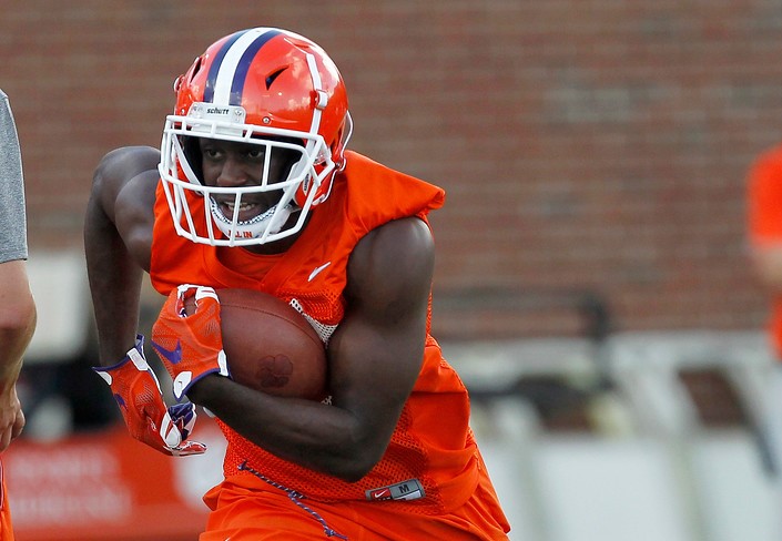 “I was very pleased with him the first two days, just his quickness,” Swinney said. “He’s got natural vision. That little sucker can scoot, man, and he’s picking things up pretty good.”