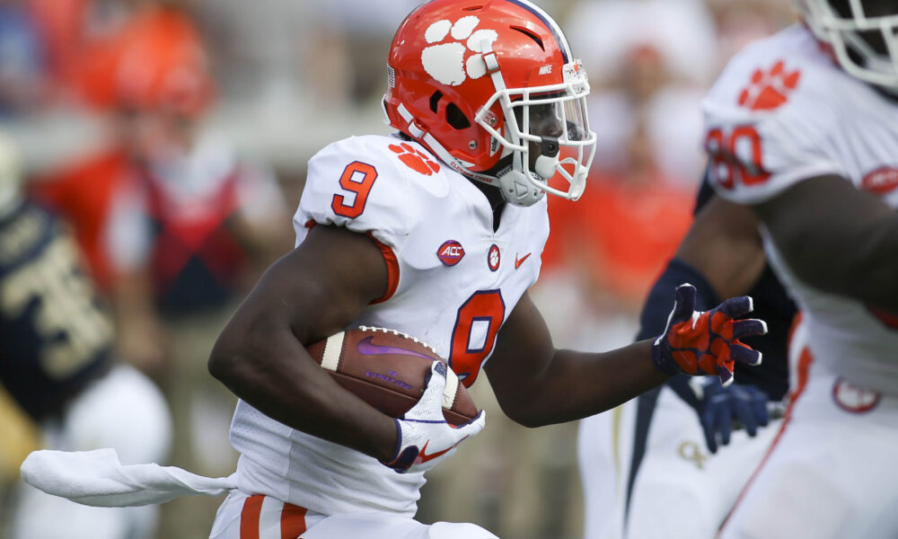 ATLANTA — Travis Etienne and the No. 2 Clemson Tigers defeated Georgia Tech on Saturday, 49-21, at Bobby Dodd Stadium. Leading the Clemson offense on the ground, Etienne had his second consecutive 100-yard performance as the team rushed for 248 yards on the day. Etienne took the time after the game to speak to the media.