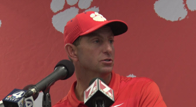 ATLANTA — Clemson head coach Dabo Swinney got fired up when talking about the play of senior linebacker J.D. Davis in the second-ranked Tigers’ 49-21 win over Georgia Tech on Saturday at Bobby Dodd Stadium.