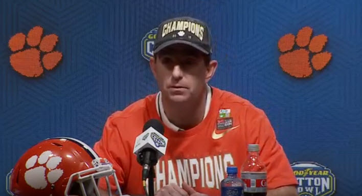 ARLINGTON, Texas — Clemson head coach Dabo Swinney and MVPs Trevor Lawrence and Austin Bryant spoke to the media following the Tigers’ 30-3 Cotton Bowl win over Notre Dame Saturday at AT&T Stadium in Arlington, Texas.