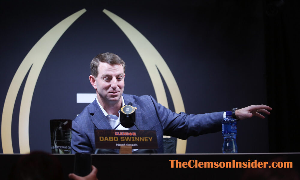 Talking about Alabama, you guys, the programs seem very similar, there’s maybe an eyelash difference, but you understand the element of the significance. Clemson obviously won a title in ’81; do you have a sense of how unique this group’s rise is to become a power like that? To have that staying power – I don’t think there’s any question that we are unique. We are very unique. Alabama is Alabama; I mean, the tradition that they have with Coach Bryant and – I mean, and what he was able to do, I mean, the 60s, the 70s, and there was a little lull in the 80s, but they were still Alabama and the tradition and the brand. Whereas Clemson, we kind of had that one little run there in the 80s, and that’s kind of when I got the job, everybody talked about the 80s, the 80s, the 80s, and everybody was I think living back in the day. And I’m like, man, we’ve got to – we can build our own program, and that’s really what I wanted to do when I got the job. I didn’t want to build a program, I wanted to build a program that was unique to Clemson, and I really had an understanding of Clemson and what it was going to take, and I had a deep belief in my vision and myself and what it would look like if we could just stay the course and kind of just take it one day at a time, one recruit at a time, one graduate at a time, and that’s what we’ve done.