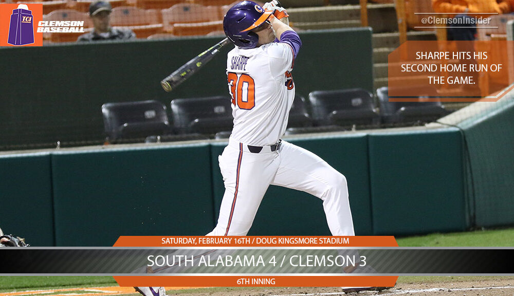 In he bottom of the sixth Sharpe hit his second of the game, a two-run home run that cut the South Alabama lead to 4-3.