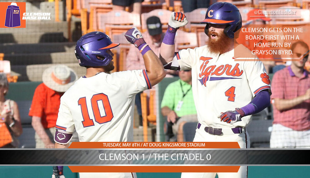 Grayson Byrd got things going for Clemson with a lead off home run to right center in the bottom of the second inning. Clemson leads The Citadel 1-0 after two innings of play.