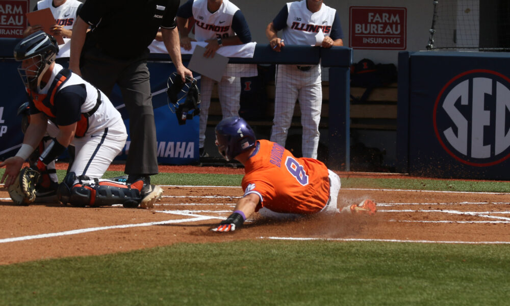 Clemson (35-24) took the lead for good in the top of the third inning, when Green led things off with a solo home run to left centerfield that tied the game at two. It was Green’s third home run of the season, and just the fourth all year allowed by Illinois starter Ty Weber.