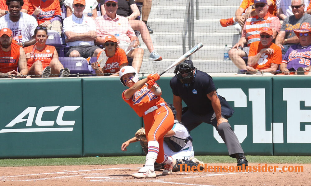 After a clutch 1-2-3 inning for Clemson’s starter Thompson in the top of the first, the Tigers came out big. With a back-to-back single and RBI double from Cammy Pereira and McKenzie Clark respectively, Aby Vieira singled down the right-field line to score Clark and double the score 2-0. Directly following, Logoleo sent a ball to deep left field for her 15th homer of the year, scoring Clark and extending the lead to 4-0. Later on in the inning, the Tigers scored two more runs off of two errors, giving Clemson the 6-0 lead after one.