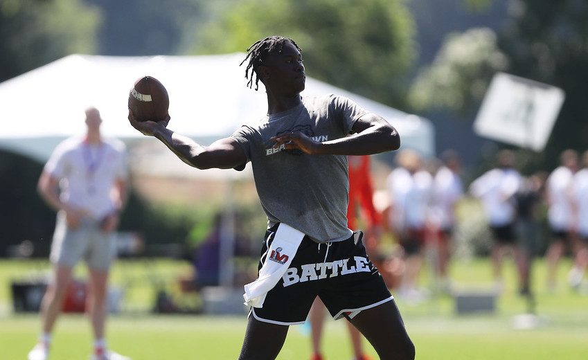 Warner Robins (Ga.) Houston County 2025 QB Antwann Hill during the morning session on Day 1 of the Dabo Swinney Camp Wednesday, June 1