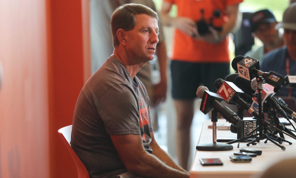 “It is what it is. We don’t have much structure in college football right now,” Swinney said. “That’s why you better be inside out, focus on where your feet are and be great today. That’s my focus because I don’t have any control over any of that stuff, so I ain’t worried about it. I just focus on my guys, Clemson and getting ready for Georgia Tech.”