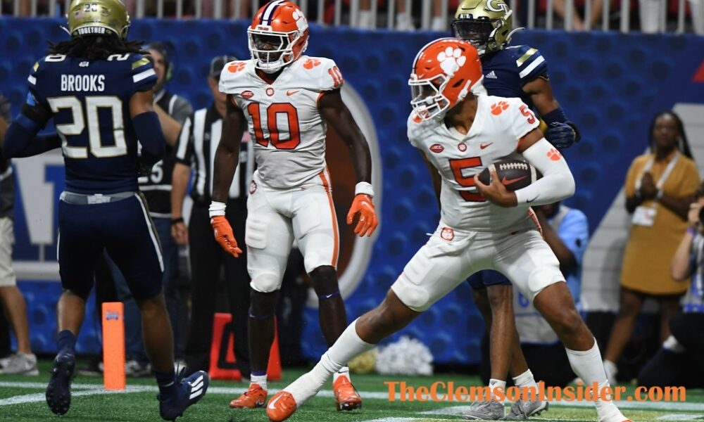 DJ Uiagalelei rushed for a 9-yard score with 1:18 left in the third frame, giving the Tigers a 24-10 lead over the Yellow Jackets in the Chick-fil-A Kickoff at Mercedes-Benz Stadium in Atlanta.