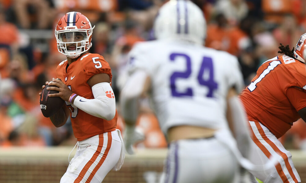 Since fumbling early in the opener against Tech, Uiagalelei has found his groove. He’s accounted for all four of his touchdowns while completing nearly 68% of his passes over the last seven quarters, which includes perhaps Uiagalelei’s best performance in a Clemson uniform. He went 21 of 27 passing with two touchdowns in Clemson’s win over Furman, posting the highest completion percentage (77.8%) and passer rating (166.7) of his career.