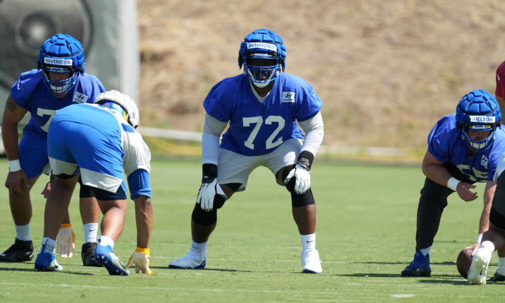 Anchrum, who was drafted by the Rams in the seventh round (250th overall) of the 2020 NFL Draft, made his first career NFL start (at right guard) in the Rams’ game against the Atlanta Falcons on Sunday but had to be taken off the field in a cart with his injury after only two plays.