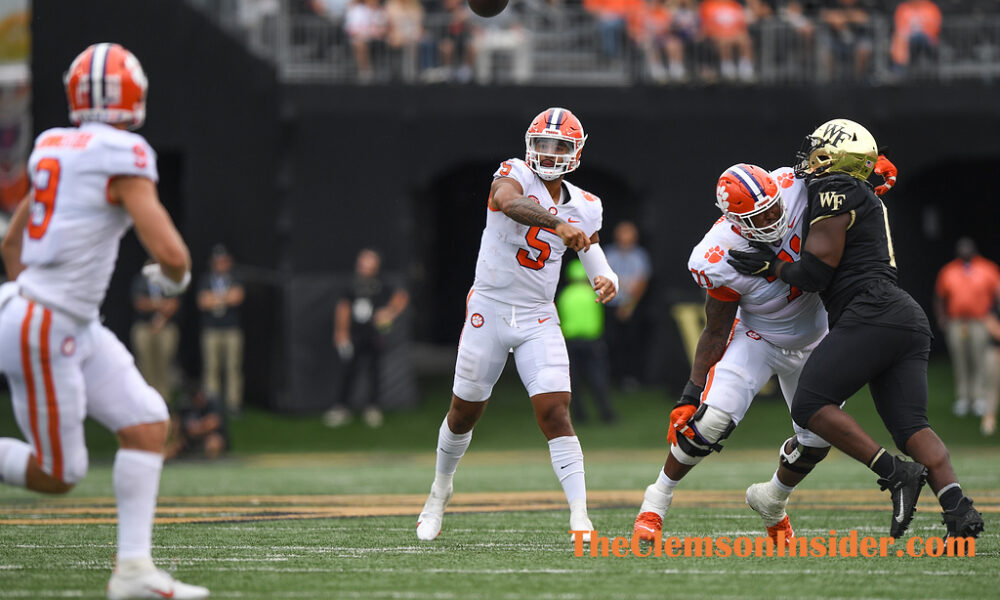 The Tigers’ junior quarterback completed 26-of-41 passes for a season-high 371 passing yards with a career-high five passing touchdowns, leading his team to a 51-45 victory over the Demon Deacons at Truist Field in Winston-Salem.