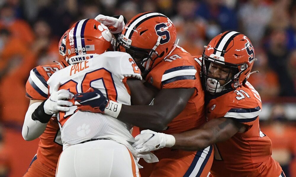 It’s Syracuse’s offensive line versus Clemson’s defensive line because if Clemson can get pressure on Shrader and force him to scramble a lot more, that potentially takes away Syracuse’s pass game, which could damage their chances. It really comes down to that. How well can Syracuse protect Shrader against Clemson’s talented defensive line?