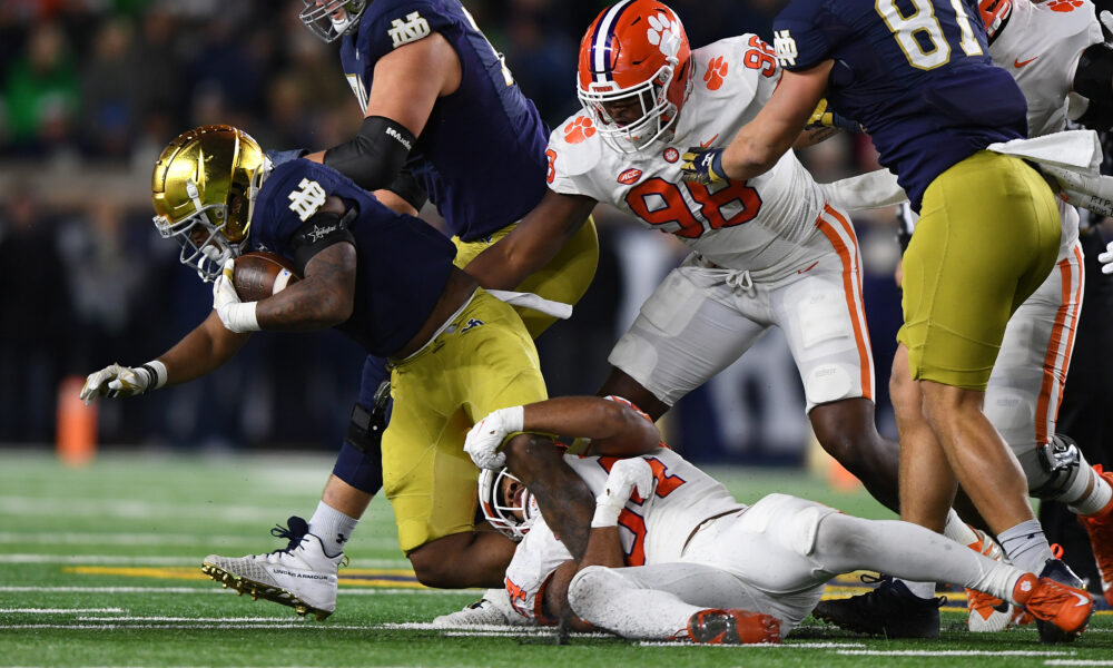 Notre Dame walloped the fourth-ranked Tigers late Saturday night at Notre Dame Stadium, improving to 6-0 this season when rushing for at least 150 yards in the process. Using that metric, the Tigers didn’t come close to giving themselves a chance. Instead, Clemson’s star-studded front seven bullied by an offense that’s largely been one-dimensional this season.
