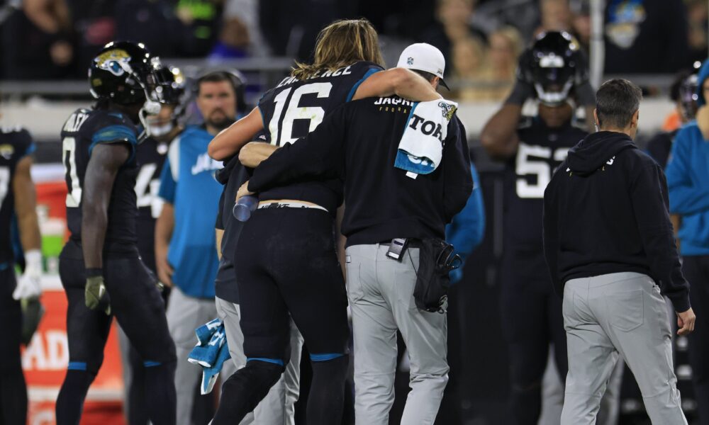 Lawrence went down late in the fourth quarter after his ankle was stepped on by left tackle Walker Little, and Lawrence got awkwardly bent over backward on his right leg. The Jags’ franchise quarterback needed a lot of help to get off the field and to the locker room to get checked out.