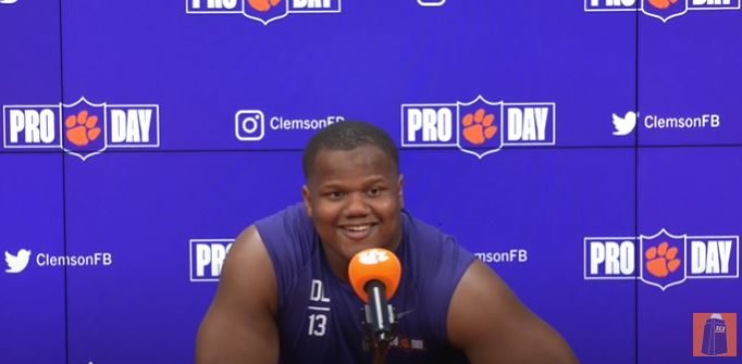 CLEMSON — Clemson defensive tackle Tyler Davis was all smiles Thursday at the conclusion of the Tigers’ Pro Day while discussing the Pro Day and process of training for April’s NFL Draft.