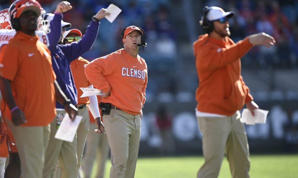 ”When it’s good, it’s going to be good. But every recruiting class is not going to hit on every player. So the transfer portal allows you to go in and if you need a wide receiver, if you need a safety, if you need some quarterback competition for Cade Klubnik, to bring someone in. Dabo chooses not to. Therefore, you’re going to have those lulls in the program, and I’m afraid right now, they have a little bit of a lull. No explosiveness on the outside. Defensively, the front is good, but where’s your guys on the second level, the linebackers and the safeties. They’ve struggled at Clemson to develop those guys for the last few years, and they’re still struggling.”