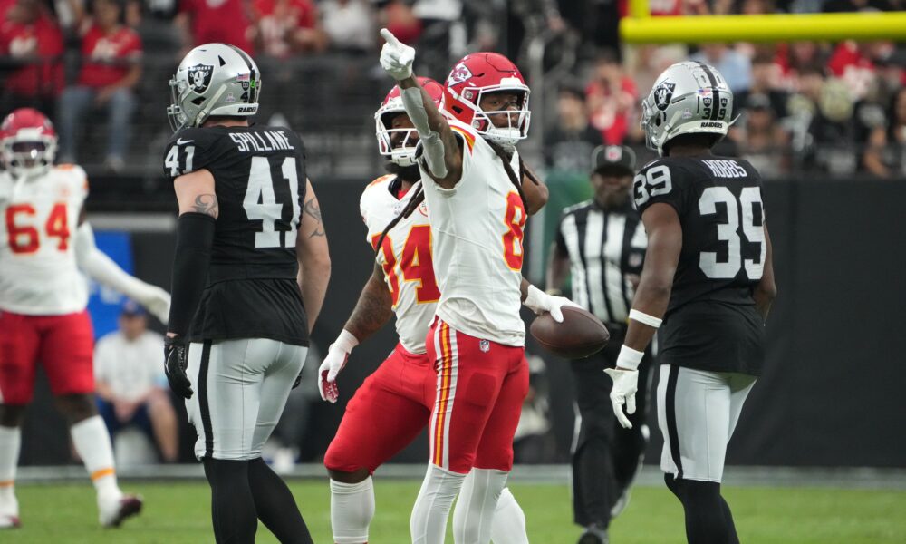 The five-time All-Pro and five-time Pro Bowler was targeted three times in Kansas City’s 27-20 win over the Raiders in Las Vegas, catching two passes for 29 yards. He played 32 percent of the Chiefs’ snaps on offense.