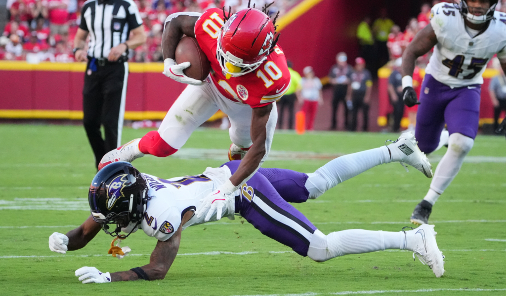 Baltimore Ravens cornerback Nate Wiggins exited the Ravens’ Week 4 loss to the Kansas City Chiefs with an elbow injury.