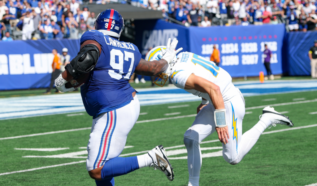 Former Clemson star defensive lineman Dexter Lawrence had to catch his breath after providing one of the highlights of the New York Giants’ 21-18 victory over the Los Angeles Chargers this past Sunday.