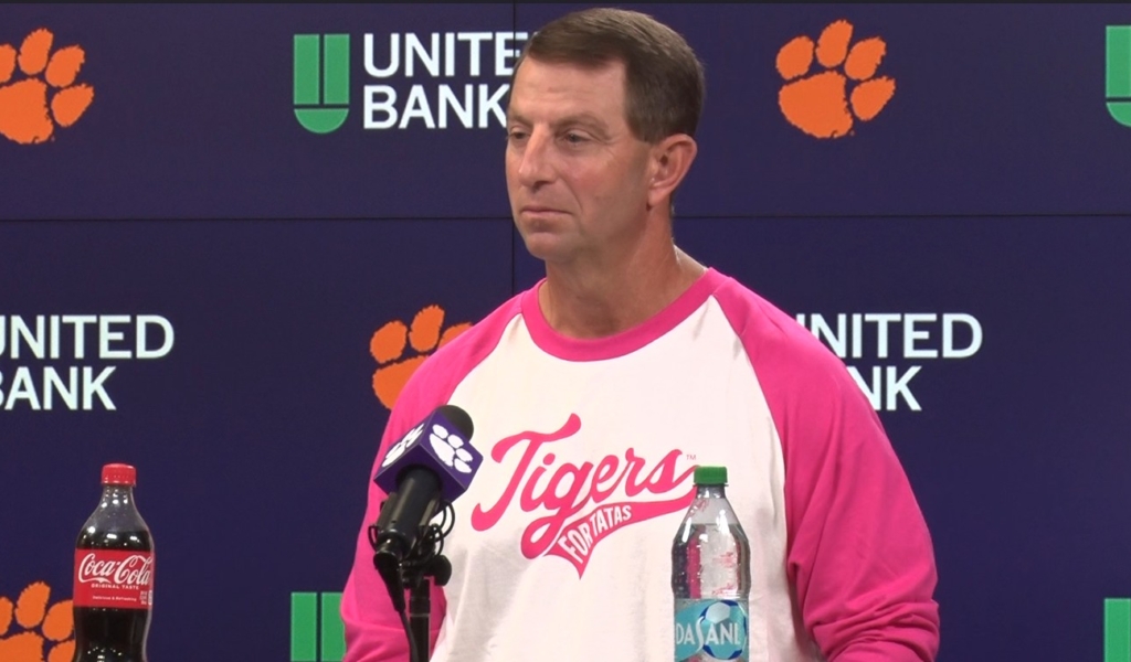 CLEMSON — Clemson head coach Dabo Swinney spoke with the media Tuesday, as part of his regular weekly press conference at the Smart Family Media Center.