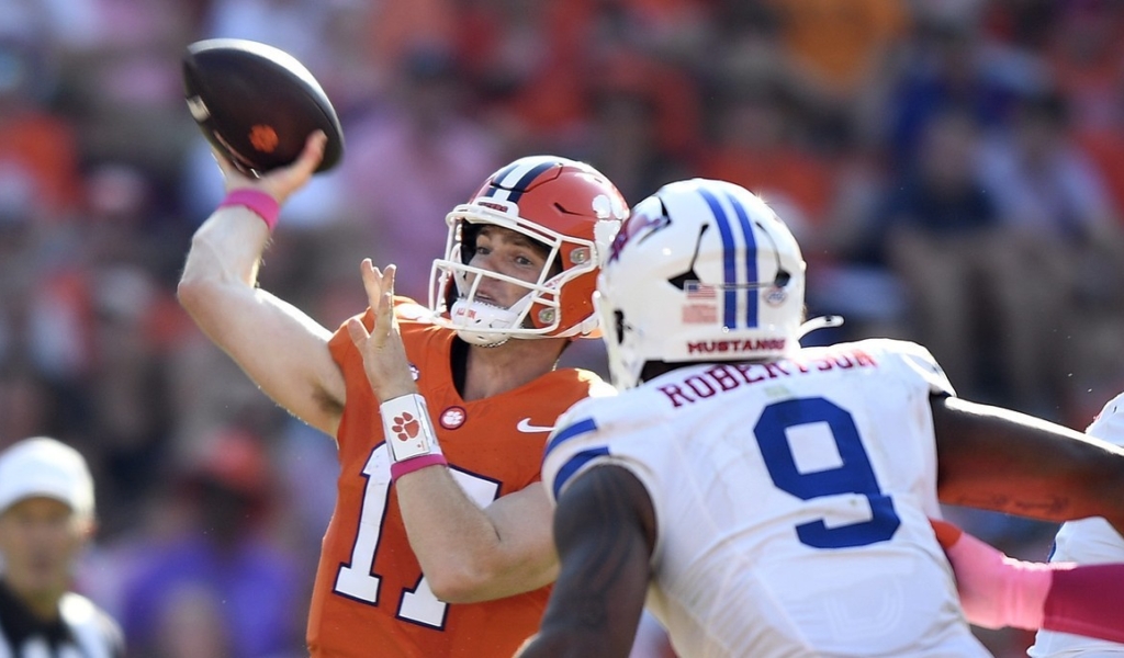 Vizzina valiantly tried to rally the Tigers. With Clemson trailing 29-17 midway through the fourth quarter, SMU jumped offside on fourth-and-21 and gave Clemson a free play. Vizzina took advantage, throwing the ball up in the end zone and giving Tristan Smith a chance to come down with it, and he did just that for a 23-yard touchdown that cut Clemson’s deficit to 29-24.