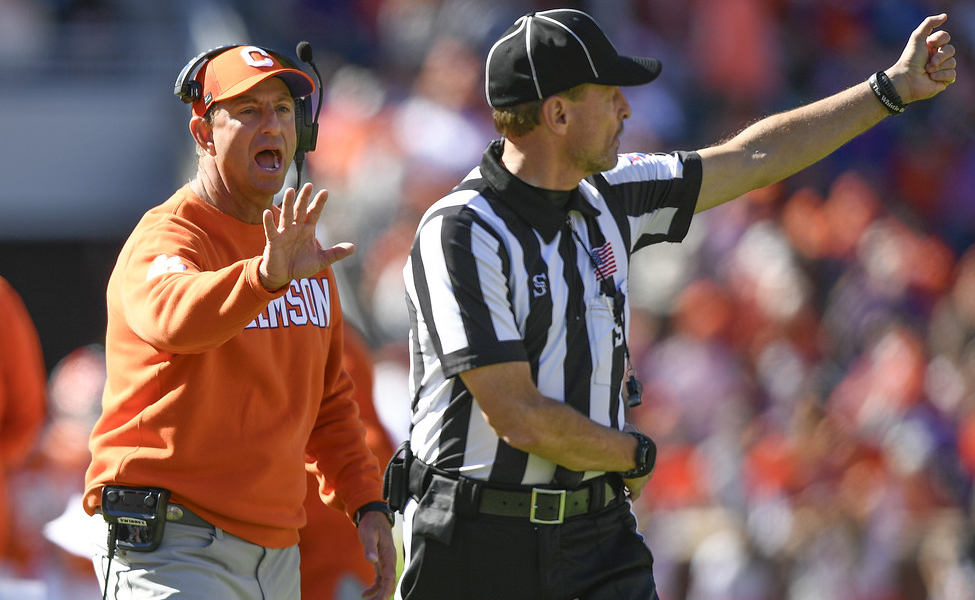 Swinney said in his first year as head coach in 2009, the ACC suspended four refs after a game due to bad calls.