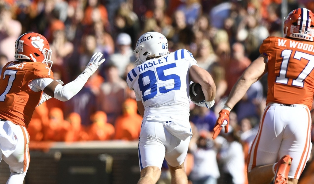 In doing so, they allowed tight end Jeremiah Hasley to run right down the middle of the field wide open where Darian Mensah hit him for a 56-yard catch-and-run to the Clemson 35. Duke went on to score the game-winning touchdown with 40 seconds to play to beat the Tigers at Memorial Stadium for the first time in 45 years.