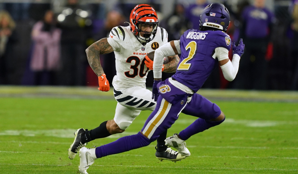 Baltimore Ravens cornerback Nate Wiggins left the Ravens’ Thanksgiving loss to the Cincinnati Bengals in the third quarter due to a foot injury.
