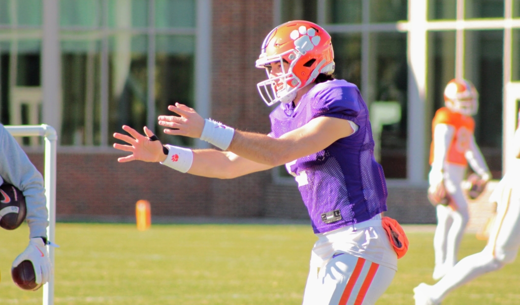 CLEMSON — Clemson quarterback Cade Klubnik was not throwing the football during practice on Monday as the Tigers continued to prep for the Pinstripe Bowl.