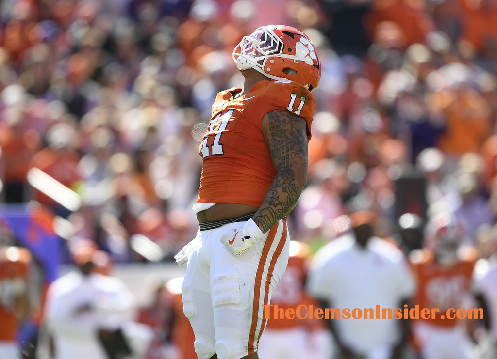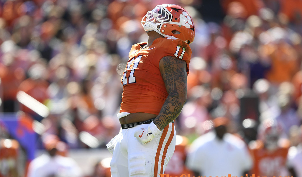 Clemson defensive lineman Peter Woods reacts after a defensive stop against Duke during the second quarter Saturday, Nov. 1, 2025 at Memorial Stadium in Clemson. (Bart Boatwright/The Clemson Insider)
