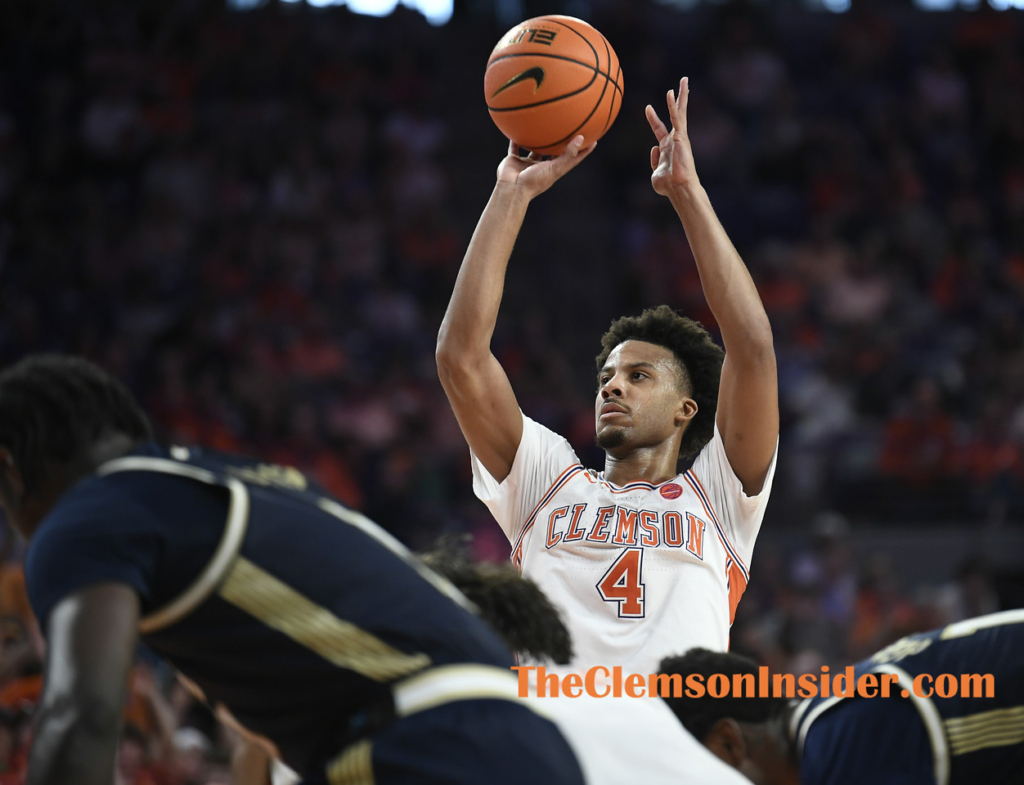 Clemson guard Butta Johnson (4) shoots a free throw against Georgia Tech on Saturday, March 7, 2026 at Littlejohn Coliseum in Clemson, S.C. (Bart Boatwright/The Clemson Insider)