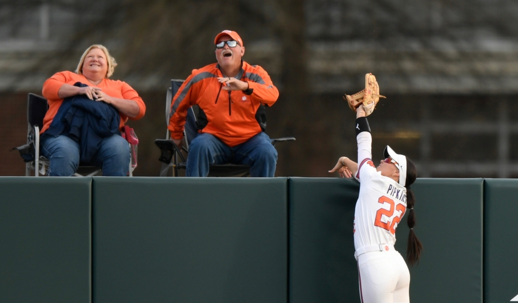 Jamison Brockenbrough nearly gave Clemson a two-run lead when she sent Johnson’s one-out pitch to deep right field. However, Holly Medina caught the 205-foot blast at the wall. It was literally one foot short of going over.