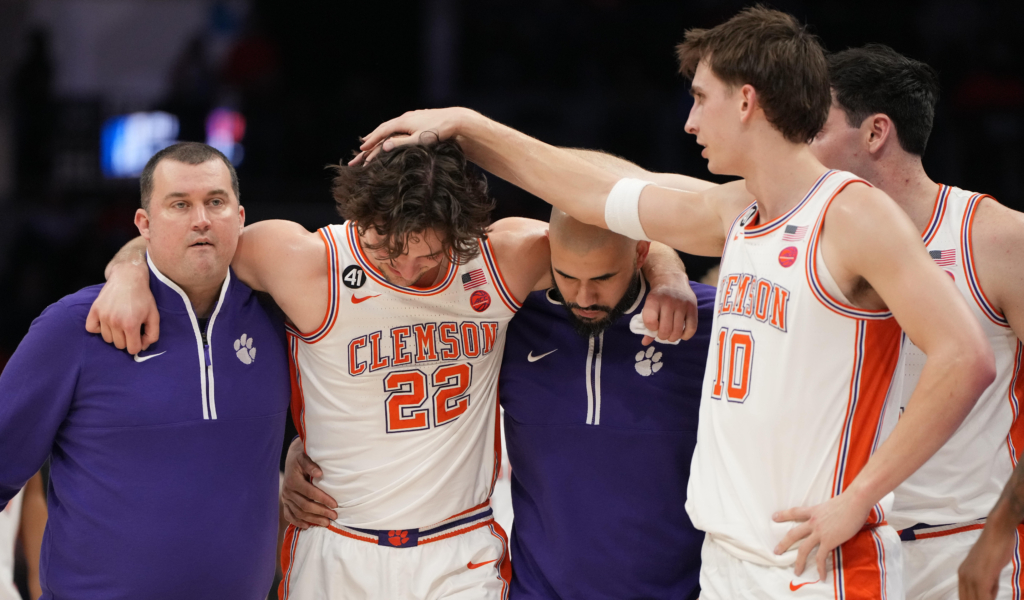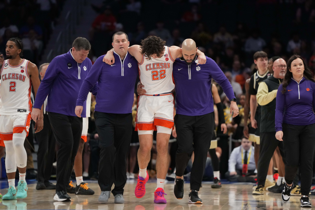 Clemson head coach Brad Brownell gave an update on forward Carter Welling, who was injured with 1:59 remaining in the first half of the Tigers’ 71-62 victory over Wake Forest Wednesday in the second round of the ACC Tournament at the Spectrum Center in Charlotte, N.C.