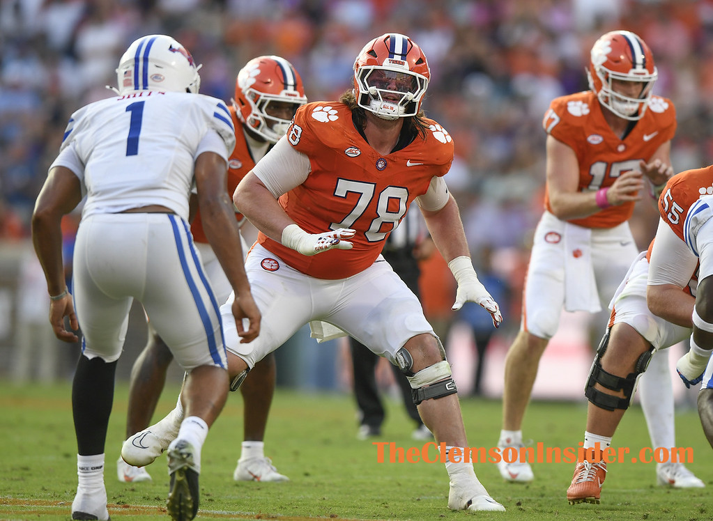 Clemson offensive lineman Blake Miller (78) during the third quarter of the Tigers’ game vs. SMU on October 18, 2025 at Memorial Stadium in Clemson, S.C. (Bart Boatwright/The Clemson Insider)