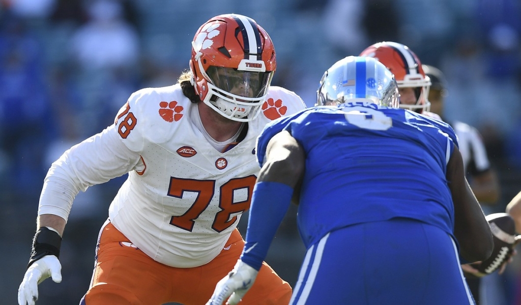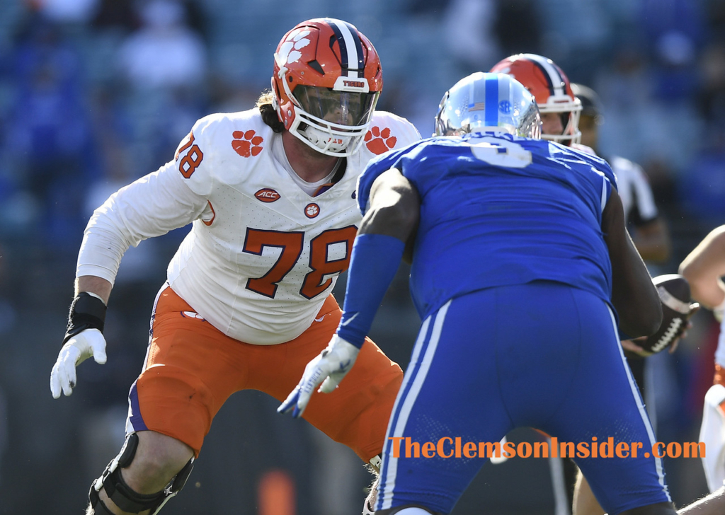 Clemson offensive lineman Blake Miller (78) during the third quarter quarter of the TaxSlayer Gator Bowl on Friday, December 29, 2023 at EverBank Stadium in Jacksonville, Fla. Detroit head coach Matt Campbell says Miller has plenty of upside and he fits what they are doing in Detroit. (Bart Boatwright/The Clemson Insider)