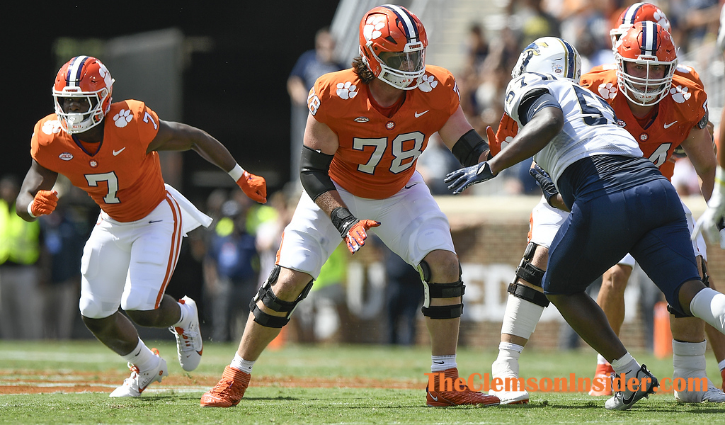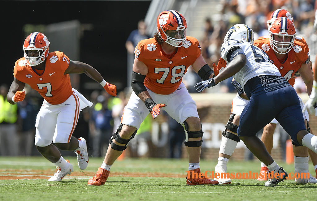 Clemson offensive lineman Blake Miller (78) plays against Charleston Southern during the first quarter on September 9, 2023 at Memorial Stadium in Clemson, S.C. (Bart Boatwright/The Clemson Insider)